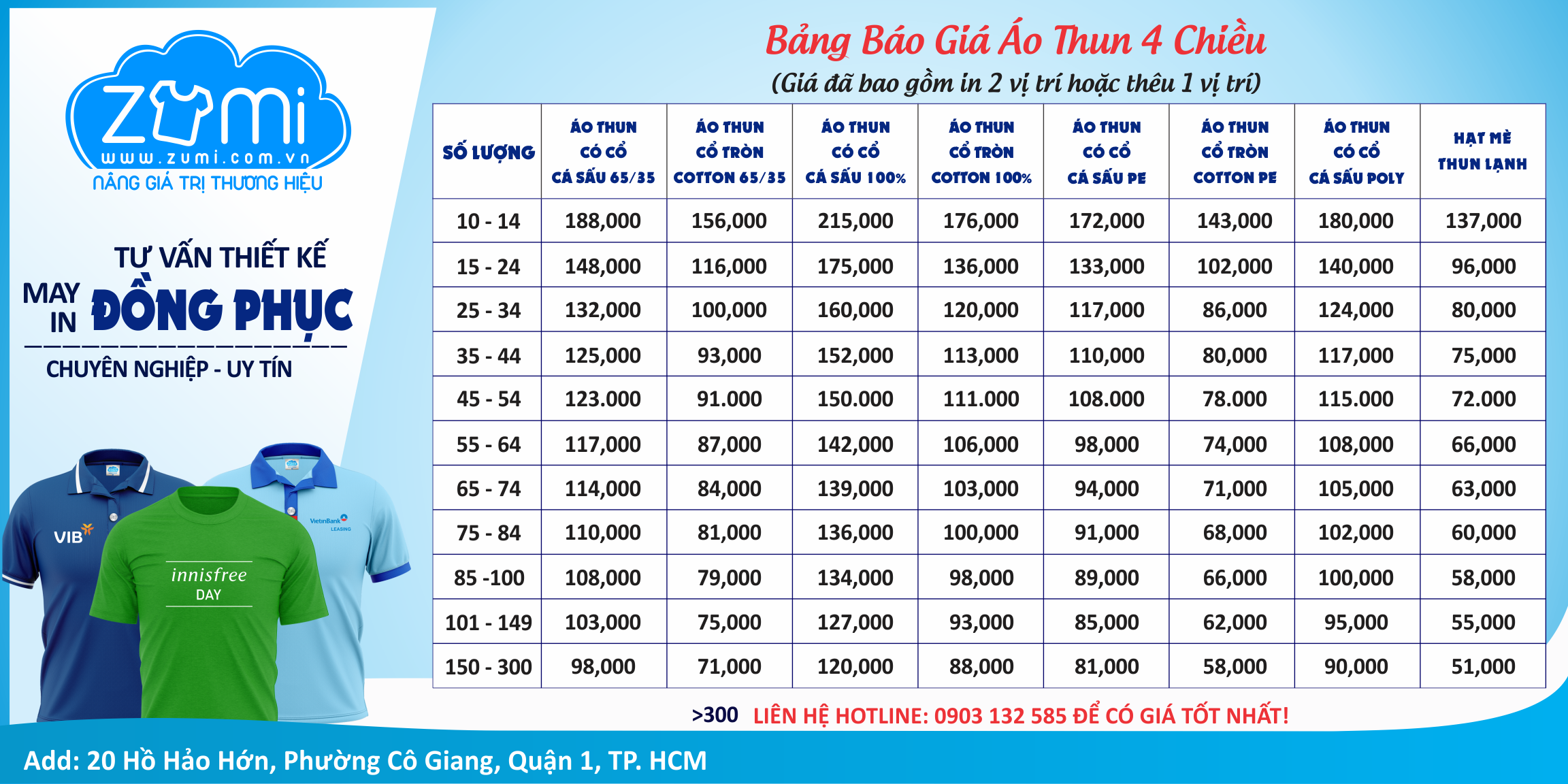 Bảng giá áo thun đồng phục tại công ty Zumi